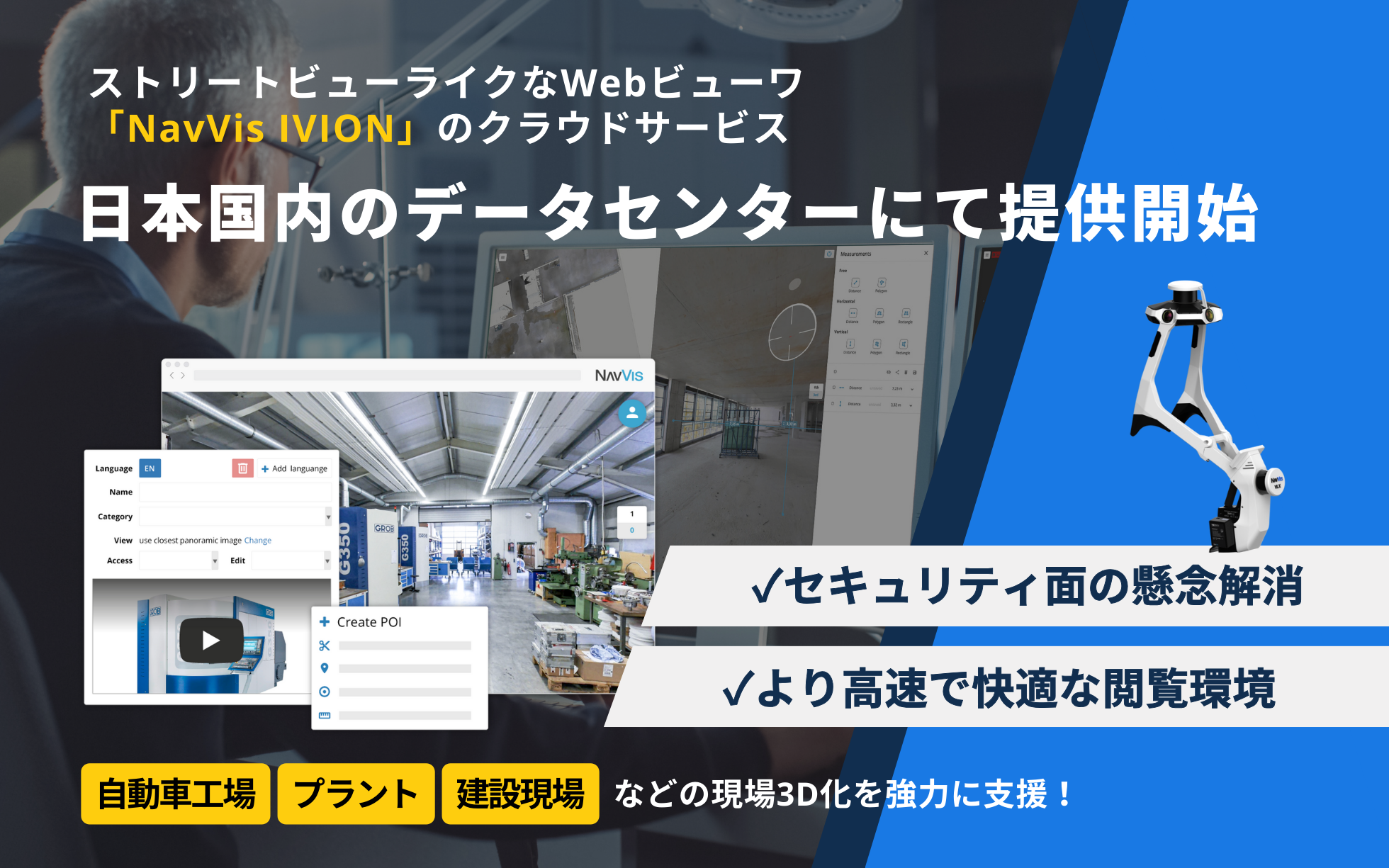 ストリートビューライクなWebビューワ「NavVis IVION」の クラウドサービスを日本国内のデータセンターにて提供開始